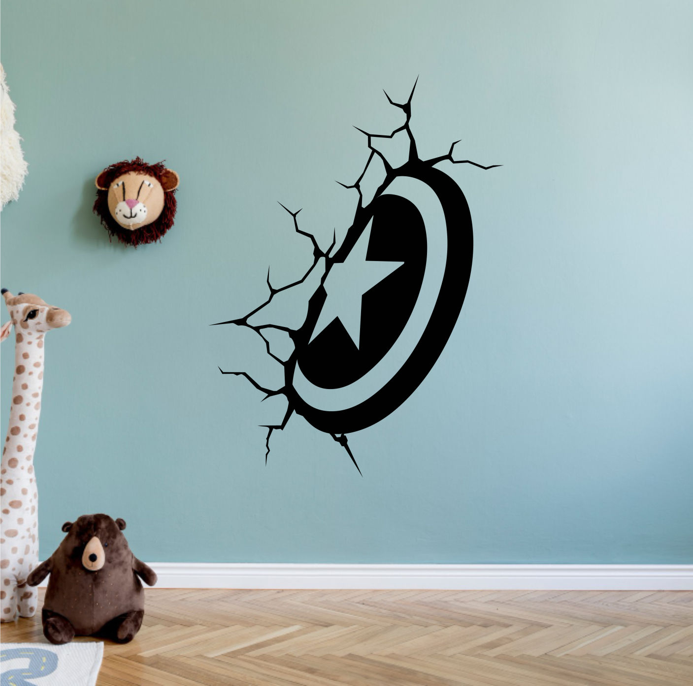 Los vinilos infantiles Escudo Capitán América en el Muro para decoración son la opción perfecta para transformar las habitaciones de tus hijos en espacios divertidos y creativos.