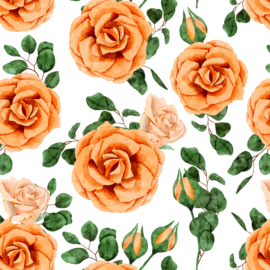 Mural vinílico con rosas en tonos naranja suave y durazno sobre fondo blanco, acompañado de hojas verde intenso. Es un diseño fresco y alegre, ideal para comedores, cocinas, estudios creativos o locales de repostería y té. El fondo blanco mantiene la luz del ambiente mientras las flores aportan color. Se imprime en vinilo autoadhesivo de alta calidad, lavable y fácil de instalar. Combina con muebles blancos, madera clara, detalles verdes y textiles en tonos naranja suave, coral o menta.