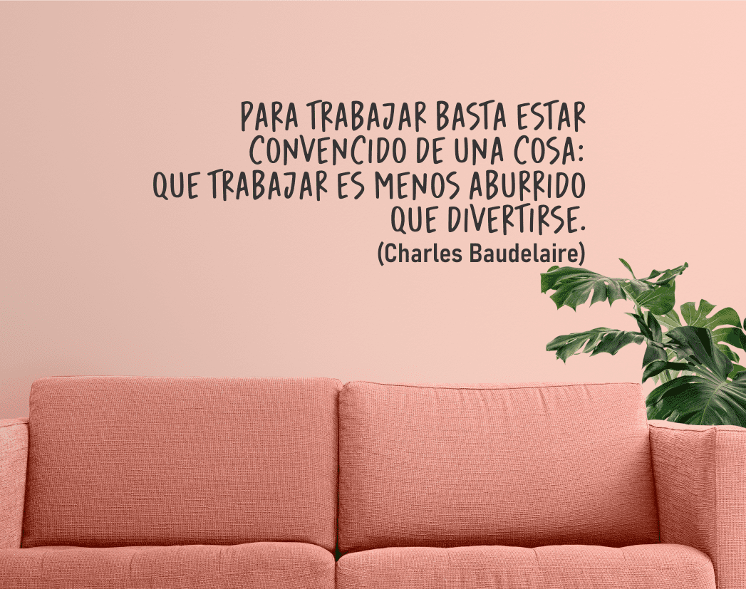 PARA TRABAJAR BASTA ESTAR… Charles Baudelaire, ideal para decorar espacio de tu hogar. Renueva tus paredes con nuestros vinilos decorativos, diseños únicos y personalizados. Fácil instalación.