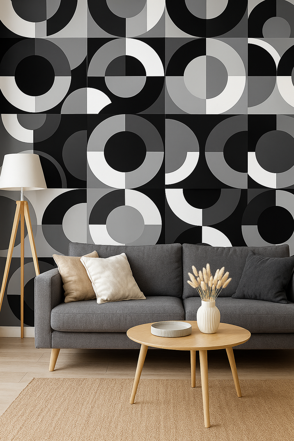 Este vinilo decorativo de diseño geométrico en blanco y negro aporta un estilo moderno y sofisticado a cualquier ambiente. Su patrón en contraste genera dinamismo visual y es perfecto para quienes buscan un toque audaz y contemporáneo en sus espacios.