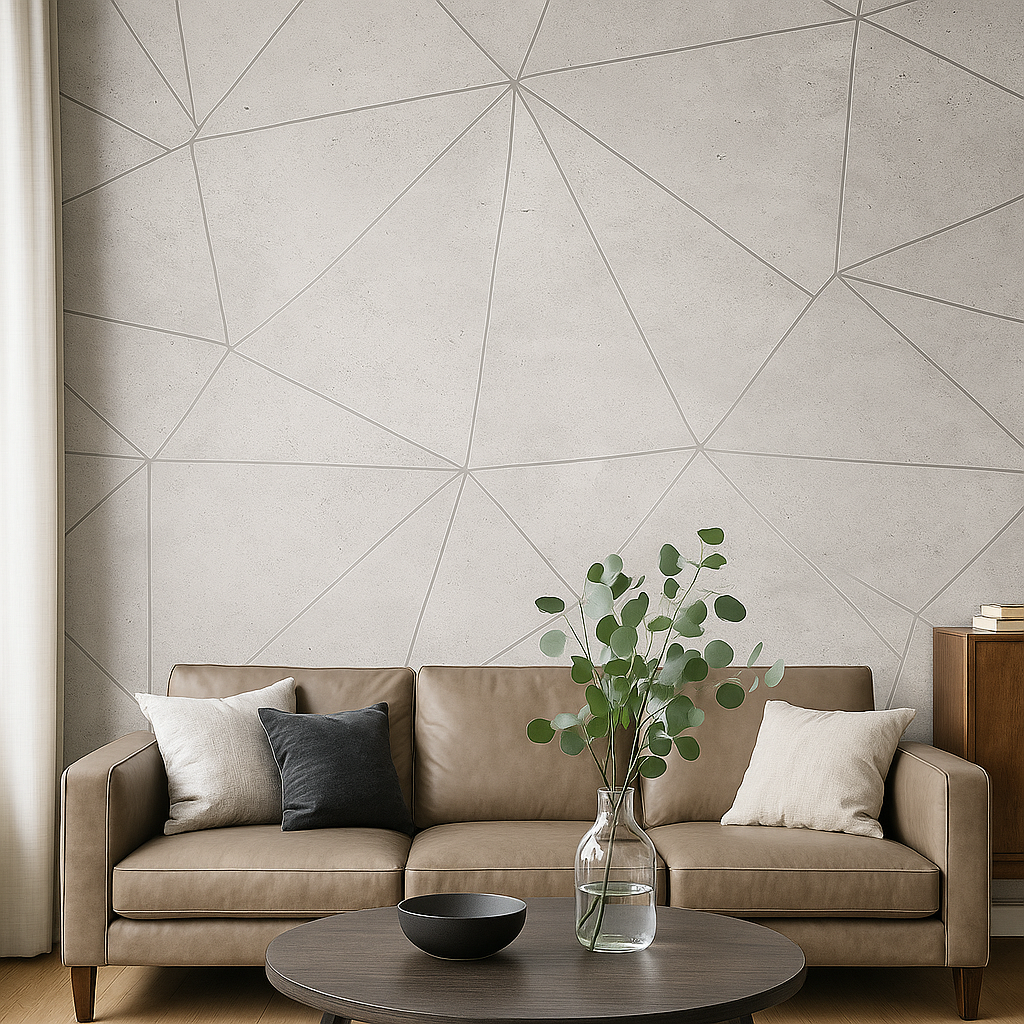 Vinilo de diseño geométrico con textura efecto cemento, tonos grises y líneas suaves. Aporta un aire urbano y sofisticado.