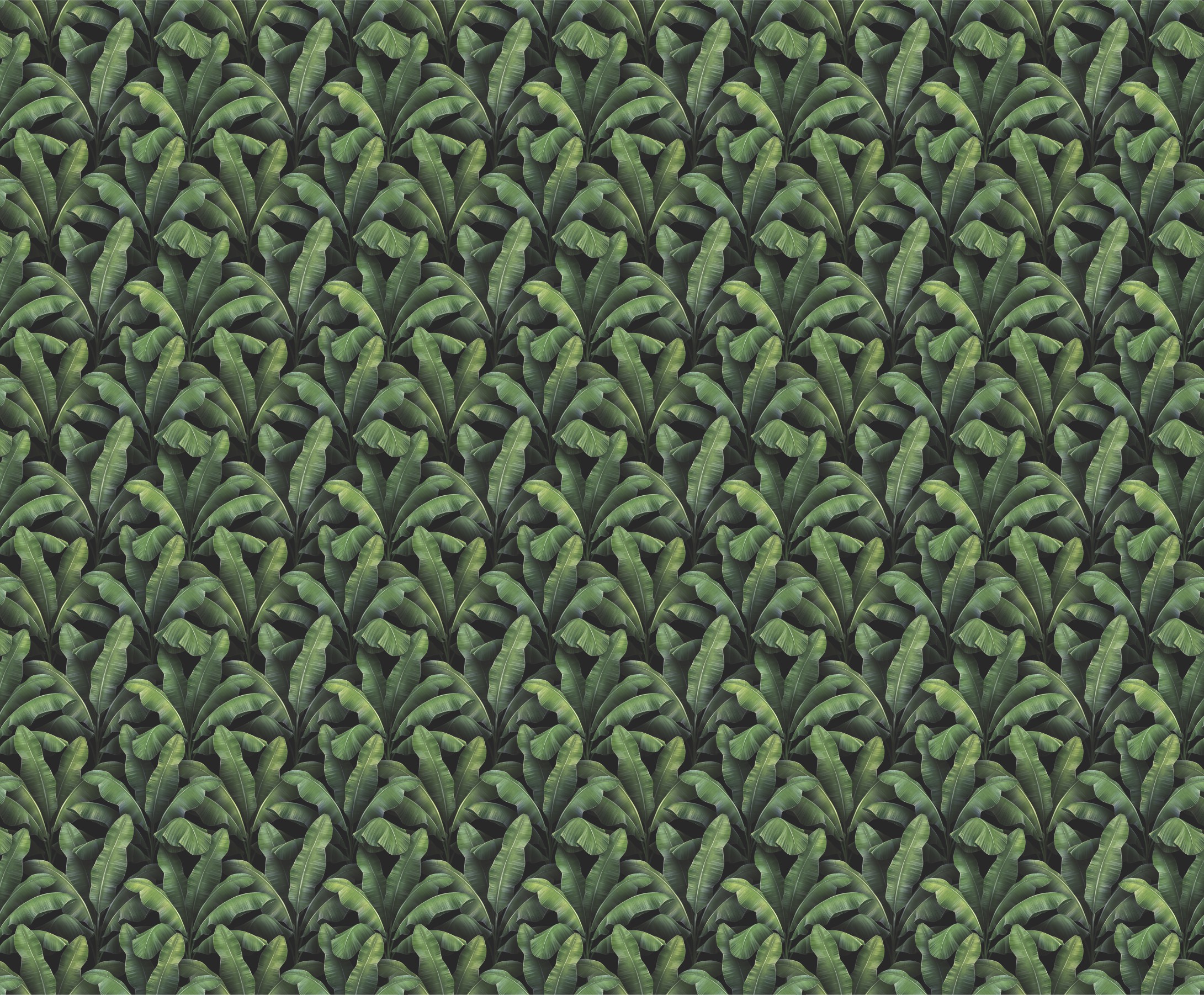 Renovar tus paredes con nuestros vinilos es una elección versátil y sencilla. Vinilo decorativo con hojas de plátano en tonos verdes sobre fondo negro. Estilo tropical moderno con carácter y profundidad visual para interiores.