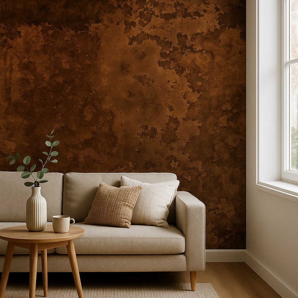 Con un acabado que combina óxido marrón oscuro y detalles en negro, este vinilo impreso transmite fuerza y sobriedad. Ideal para quienes buscan un ambiente elegante y moderno con un toque industrial, perfecto para lofts, bares y oficinas de diseño.